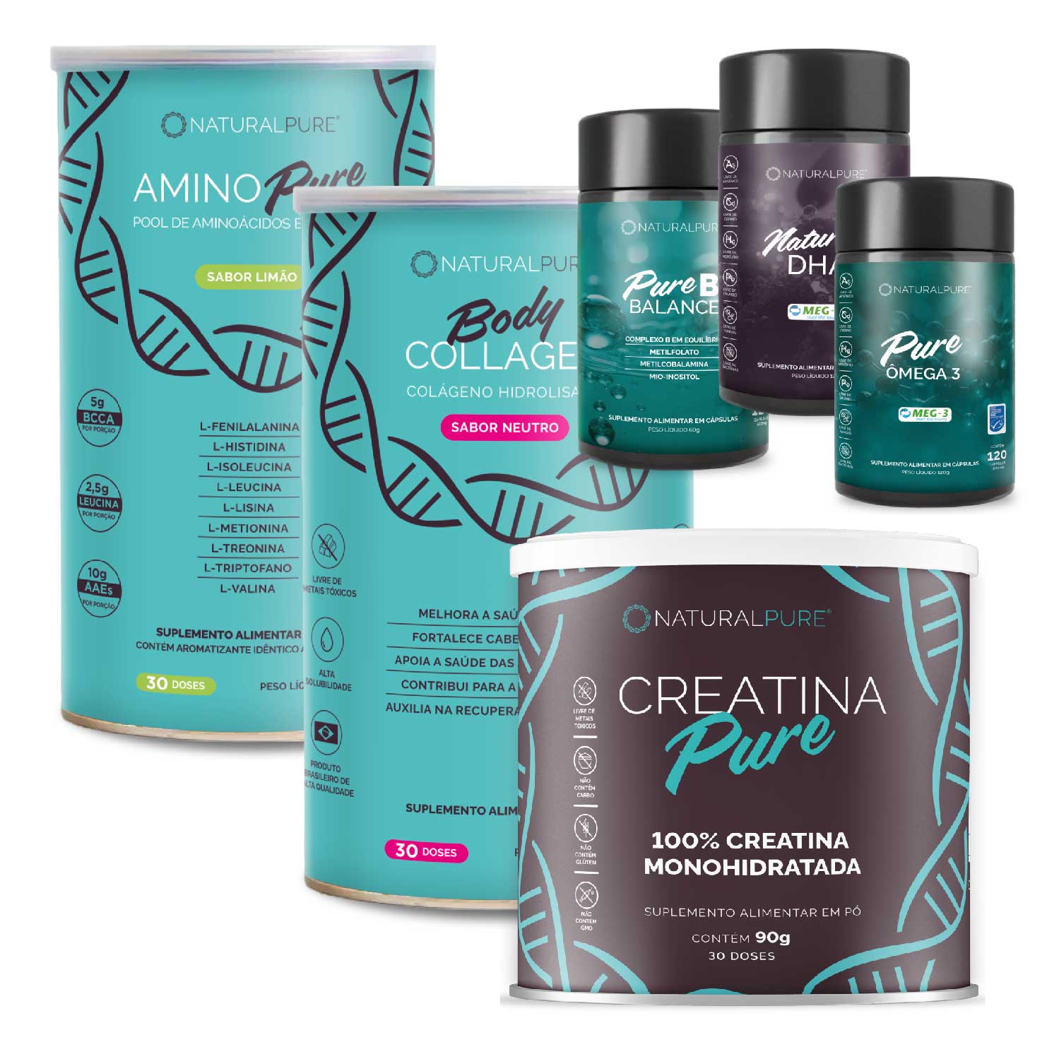 - Pure Ômega 3: Ação anti-inflamatória que apoia o sistema cardiovascular e melhora o foco e o equilíbrio emocional.